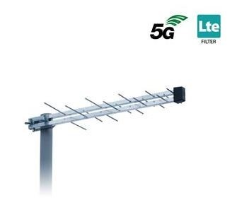 - Zisk antény je 8 dB má zabudovaný LTE filter 700 5G čo znamená že potlačí signály o -20 dB kanály 49-69(698-862 MHz) využívané mobilnými operátormi, ktoré môžu spôsobiť rušenie prijímaných signálov pre televíziu