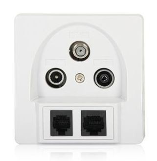 Táto zásuvka patrí do novej série, ktorá integruje anténne systémy FM/TV/SAT s telefónnou a počítačovou LAN sieťou. (TV-FM-SAT+RJ45)