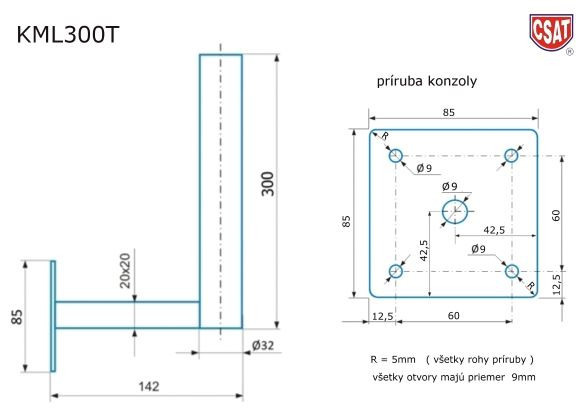 Konzola KML300T, montáž na stenu, trubku alebo jakel