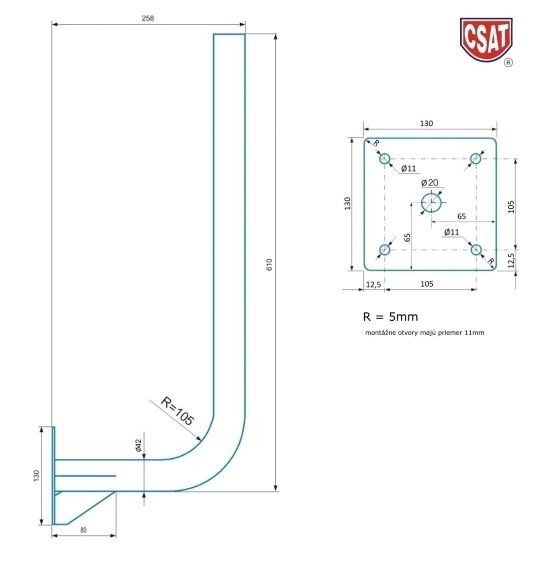 Popis Konzola na stenu alebo stožiar KS1-60M
