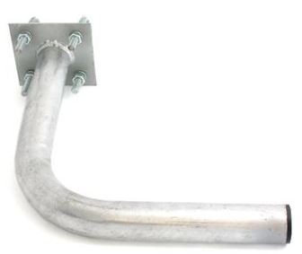 Konzola stožiarová ST150/300-42GZ - Malá / Krátka Tvar konzoly: L Odstup konzoly: 150 mm Výška konzoly: 300 mm Rozmer platne: 120 x 120 mm Počet dier v platni: 4 Rozteč dier: 70 x 70 mm Priemer trubky: 42 mm Spôsob výroby: ohýbanie za tepla Ukončenie zvyslej trubky: plastová zátka Materiál: oceľ Povrchová úprava: galvanický zinok Voliteľne sa dodáva spolu so strmeňmi tvaru U (rozteč 70mm, priemer 8mm alebo 10mm)