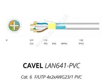 Popis LAN kábel CAVEL 641, Cat6, PVC, F/UTP (FTP), predaj na metre