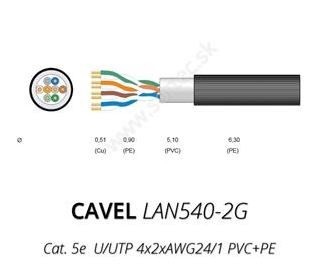 Popis LAN kábel vonkajší CAVEL 540 2G, Cat.5e, PVC+PE, UTP, 300m balenie