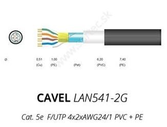 Popis LAN kábel vonkajší CAVEL 541-2G, Cat5e, PVC+PE, F/UTP (FTP), čierny, 200m balenie
