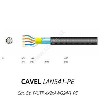 Popis LAN kábel vonkajší CAVEL 541, Cat5e, PE, F/UTP (FTP), čierny, 300m balenie