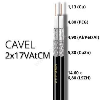 - Multi koaxiálny kábel CAVEL 2x17VAtCM(typ RG 6) je Double Shield triedy Class A a je z dvoch rovnakých káblov