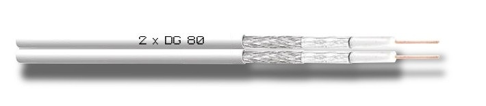 Popis Multi Koaxiálny kábel CAVEL 2xDG80, PVC, 5mm, biely , Class A, 150m balenie
