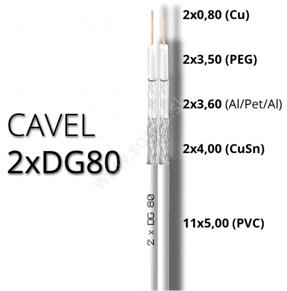 Popis Multi Koaxiálny kábel CAVEL 2xDG80, PVC, 5mm, biely, predaj na metre
