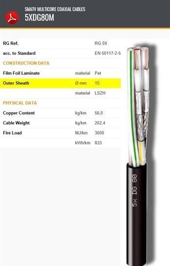 Popis Multi Koaxiálny kábel CAVEL 5xDG80, PVC, 5mm LSOH, Class A, predaj na metre