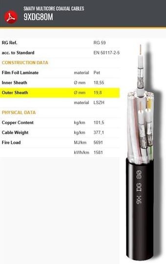 Popis Multi Koaxiálny kábel CAVEL 9xDG80, PVC, 5mm LSOH, Class A, predaj na metre