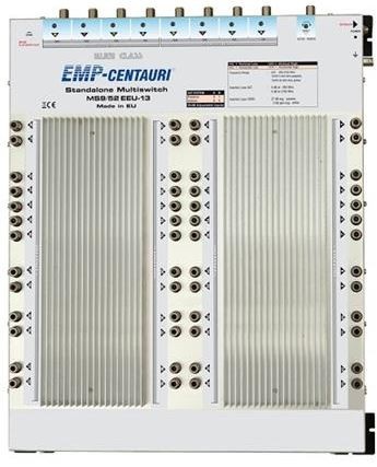 - Multiprepínač EMP-Centauri MS9/52 EEU-13 je samostatný pre distribúciu pozemních a satelitnych signálov z 2 satelitných pozícii (8 polarizácií) pre 52 účastníkov