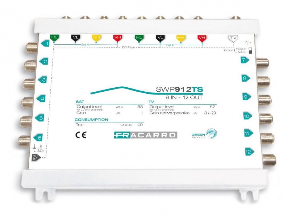 Popis Multiprepínač pre 2 družice FRACARRO SWP912TS
