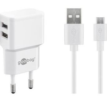 Nabíjačka USB 230V, 5V-2.4A, + kábel USB 2.0 MICRO-B M/M 1m, biely set