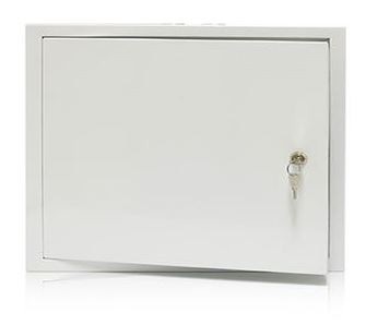 Uzamykateľná skriňa o rozmeroch 700 x 500 x 200 mm s vyberateľnou plechovou platňou na zadnej strane.