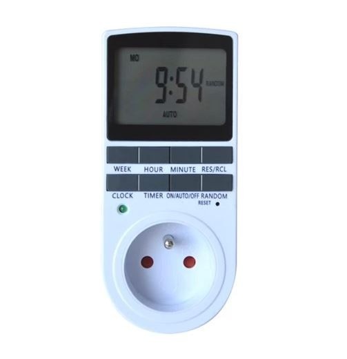 Pomocou tejto digitálnej spínané zásuvky môžete v nastavených časoch vypínať a zapínať sieťové spotrebiče. Zásuvka má denný aj týždenný spínací cyklus, veľmi jednoduché ovládanie a funkcie DST (letný čas) a RANDOM (náhodné spínanie). Disponuje týždenným a denným cyklom s 10 kombináciami spínacích intervalov za deň. Max. spínaný výkon časového spínača je 3680W.