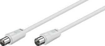 TV účastnícka šnúra 1,5m s IEC konektormi (samec/samica) bielej farby.